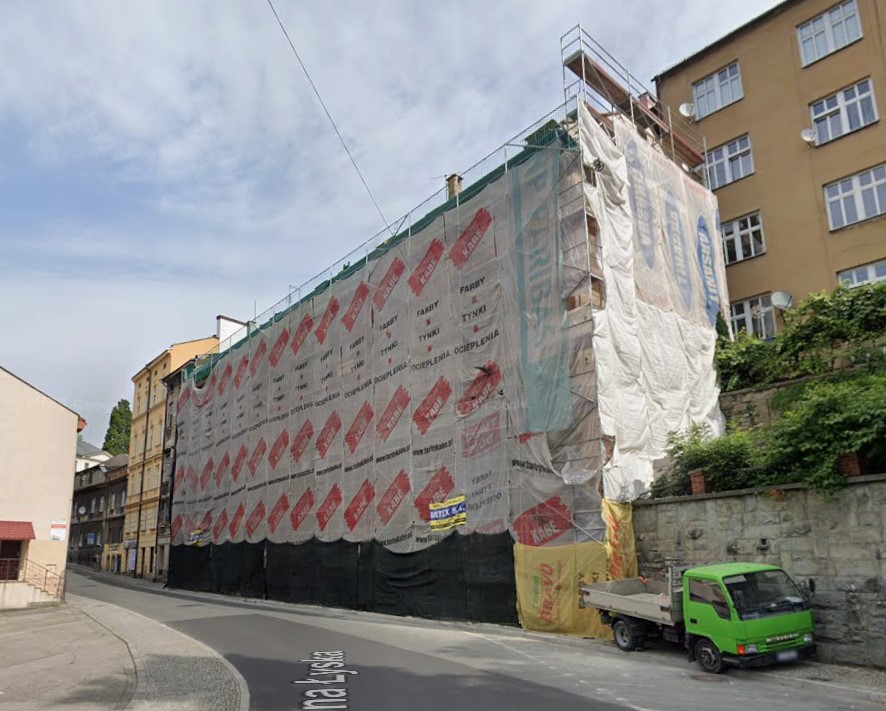 Elewacja w trakcie prac renowacyjnych